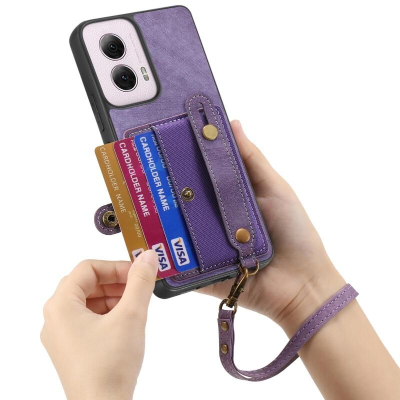 Θήκη κινητού τηλεφώνου από δέρμα με σχέδιο σταυρού και λουρί καρπού για Motorola Moto G Power 5G 2024 (Μωβ)