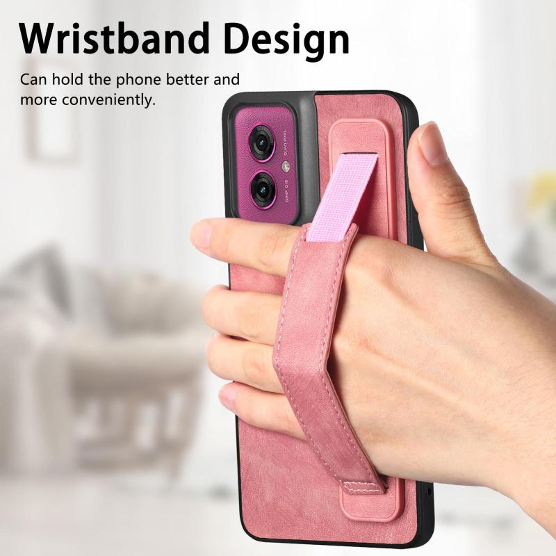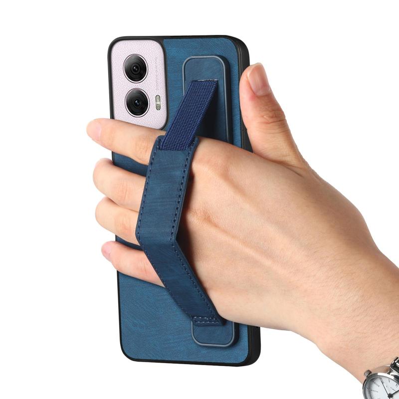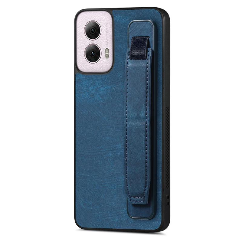 For Motorola Moto G Power 5G 2024 Retro Wristband Holder Leather Back Phone Case(Blue)
