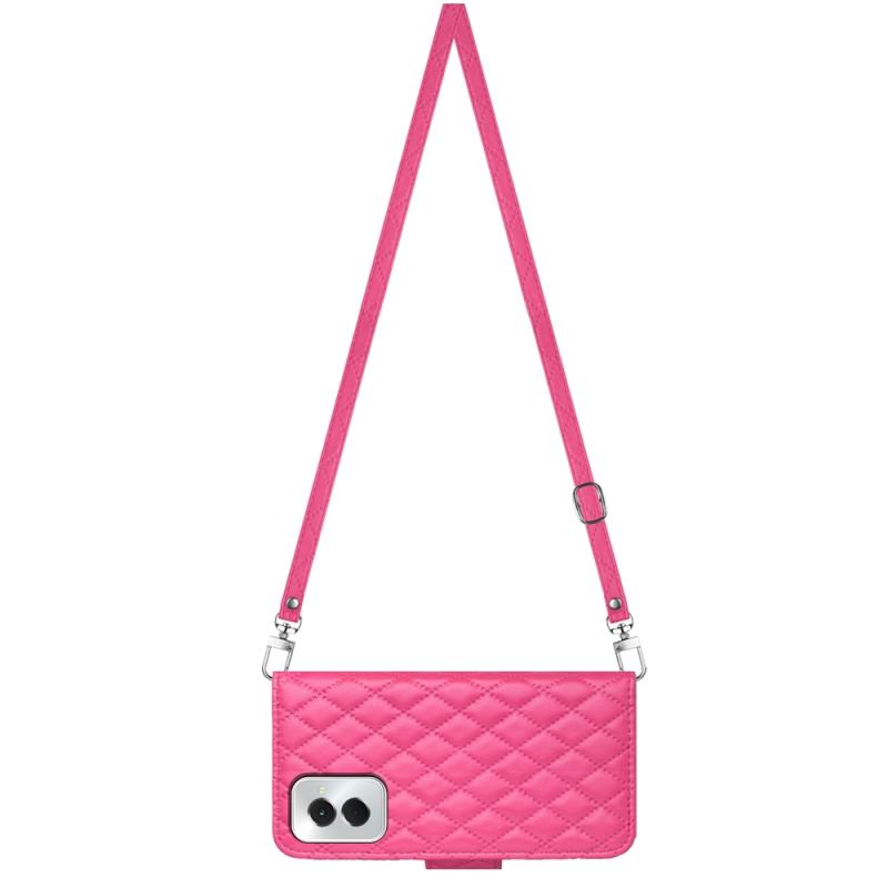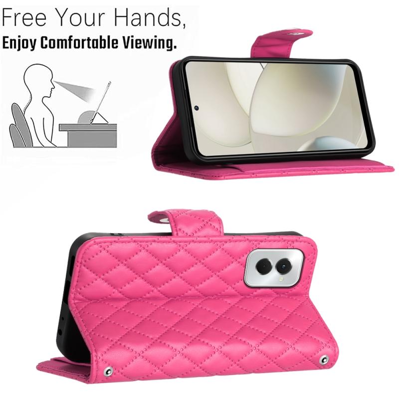 For Motorola Moto G Power 5G 2024 Rhombic Texture Flip Leather Phone Case with Long Lanyard(Rose Red)