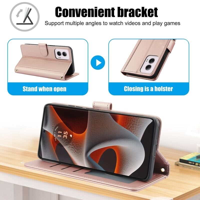 Για Motorola Moto G Power 5G 2024 Skin Feel Pure Color Card Slots Δερμάτινη θήκη τηλεφώνου με διπλό κορδόνι (ροζ χρυσό)