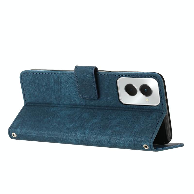 For Motorola Moto G Power 5G 2024 Skin Feel Stripe Pattern Leather Phone Case with Lanyard(Blue)