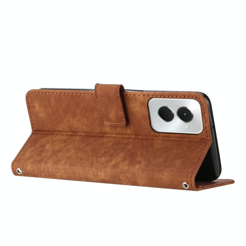 For Motorola Moto G Power 5G 2024 Skin Feel Stripe Pattern Leather Phone Case with Lanyard(Brown)