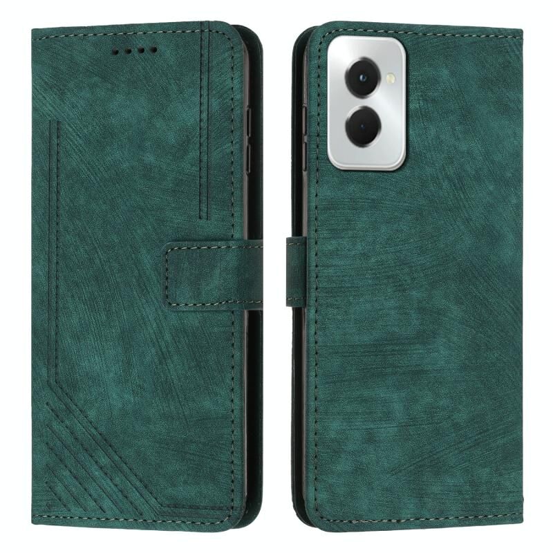 For Motorola Moto G Power 5G 2024 Skin Feel Stripe Pattern Leather Phone Case with Lanyard(Green)
