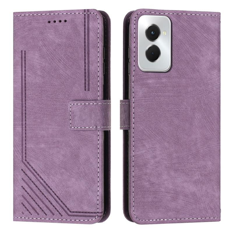 For Motorola Moto G Power 5G 2024 Skin Feel Stripe Pattern Leather Phone Case with Lanyard(Purple)
