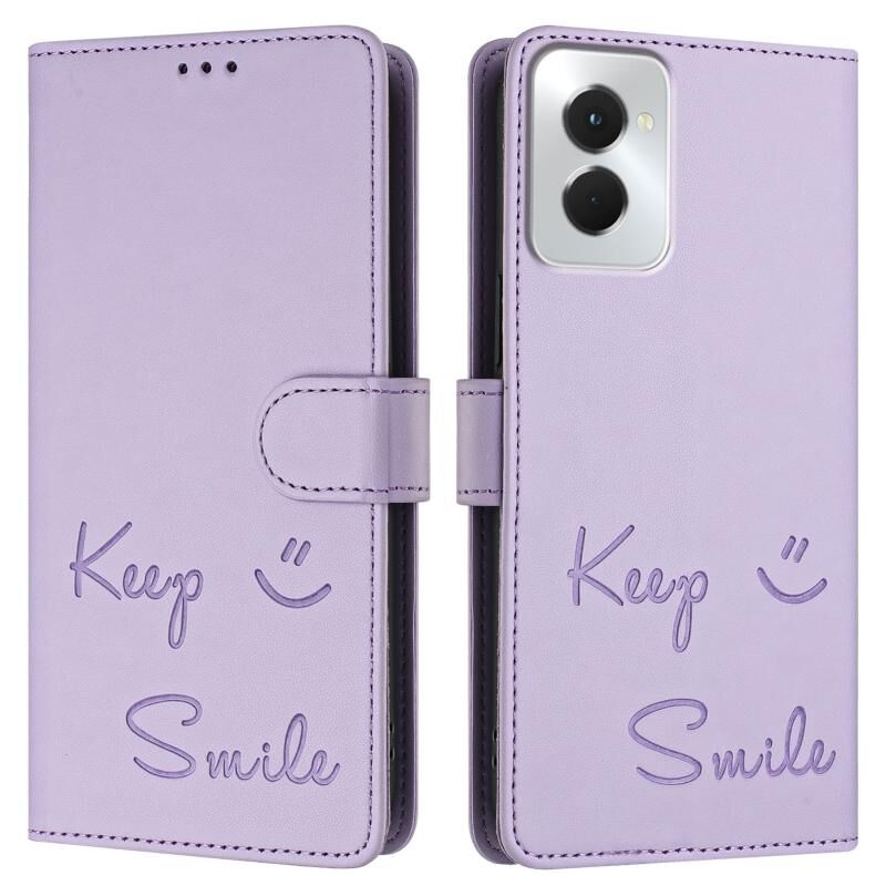 Θήκη τηλεφώνου από δέρμα με ανάγλυφο χαμόγελο και RFID για Motorola Moto G Power 5G 2024 (Μέντας Πράσινο)