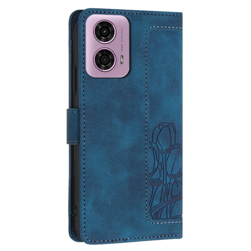 For Motorola Moto G Power 5G 2024 Tulips Embossed Leather Phone Case with Lanyard(Blue)