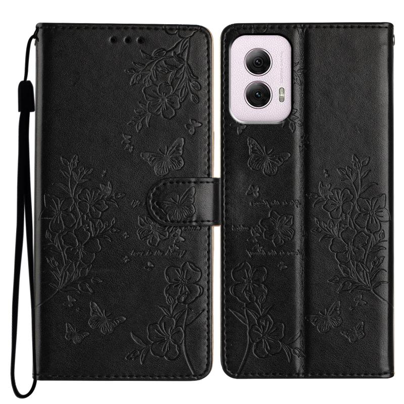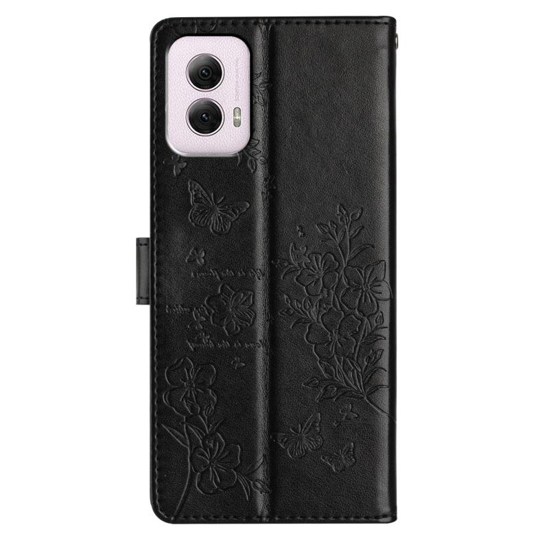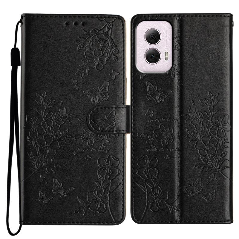 Θήκη τηλεφώνου από δέρμα για Motorola Moto G Power 5G, με σχέδια πεταλούδες και λουλούδια (Χρυσό)