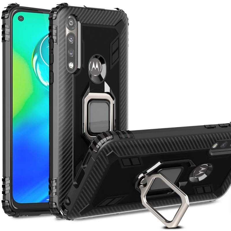 Για Motorola Moto G Power Carbon Fiber Προστατευτική θήκη με 360 μοίρες περιστρεφόμενο δακτύλιο στήριξης (μαύρο)