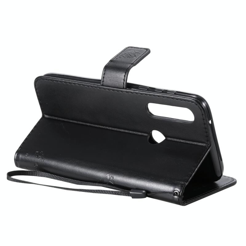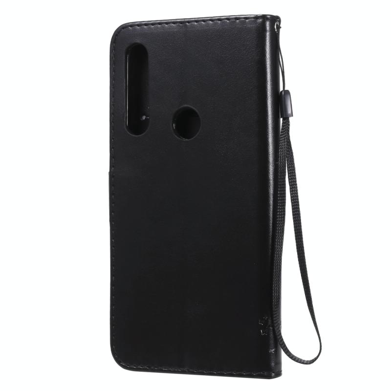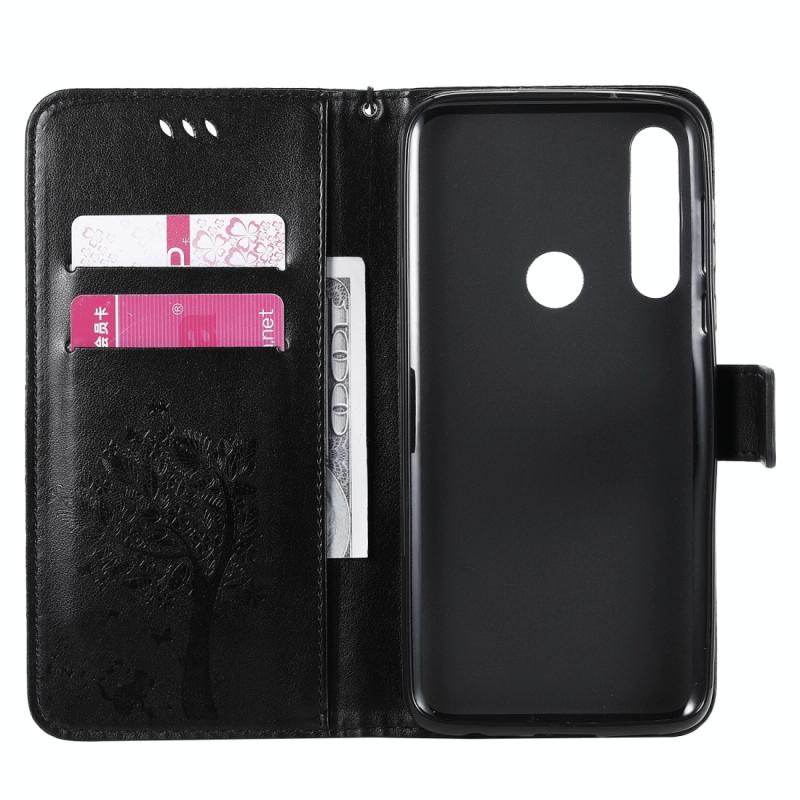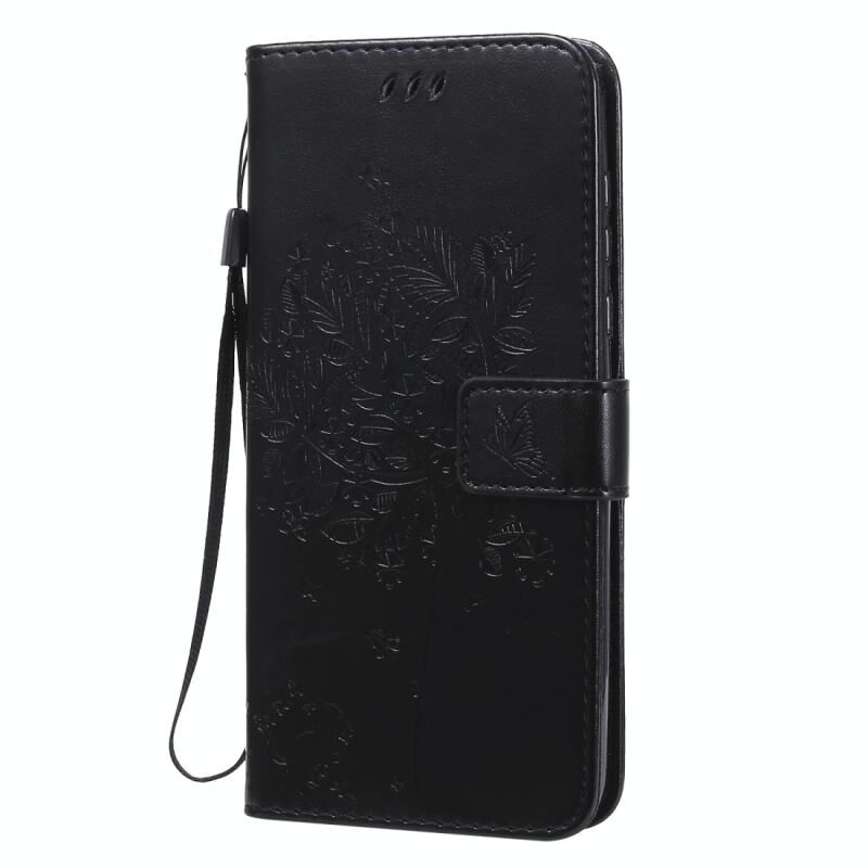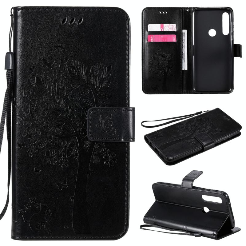 Θήκη δέρματος οριζόντιας αναδίπλωσης για Motorola Moto G Power με ανάγλυφο σχέδιο δέντρου & γάτας, με βάση στήριξης & θήκες καρτών & πορτοφόλι & κορδόνι (Μαύρο)