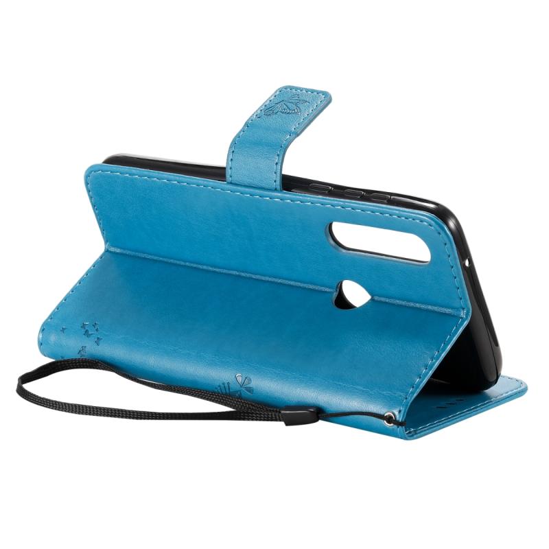 Θήκη δέρματος οριζόντιας αναδίπλωσης για Motorola Moto G Power με ανάγλυφο σχέδιο δέντρου & γάτας, με βάση στήριξης & θήκες καρτών & πορτοφόλι & κορδόνι (Μπλε)