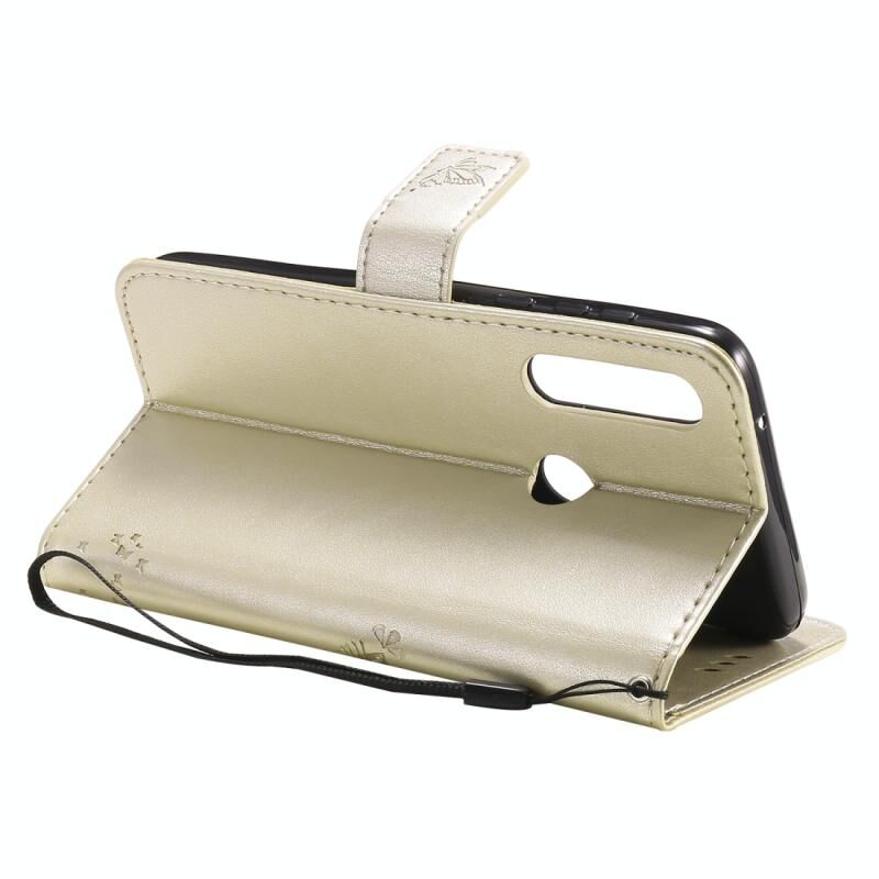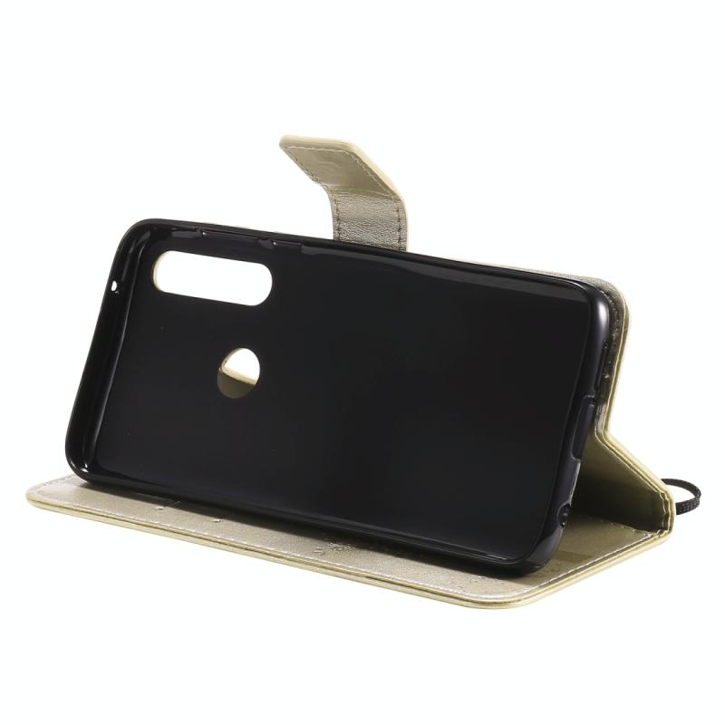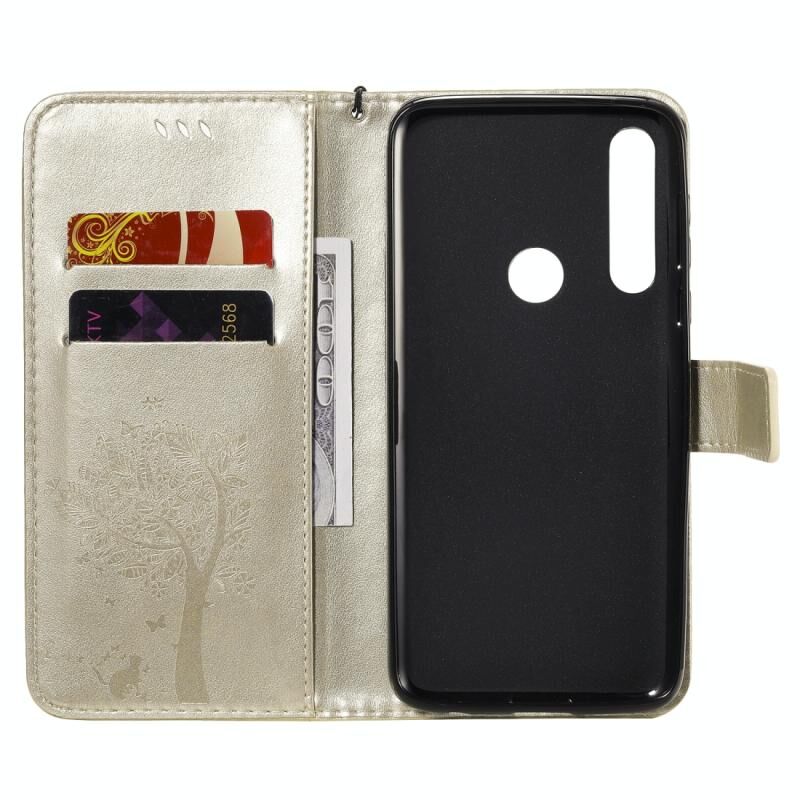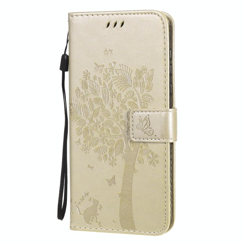 Θήκη δέρματος οριζόντιας αναδίπλωσης για Motorola Moto G Power με ανάγλυφο σχέδιο δέντρου & γάτας, με βάση στήριξης & θήκες καρτών & πορτοφόλι & κορδόνι (Χρυσός)
