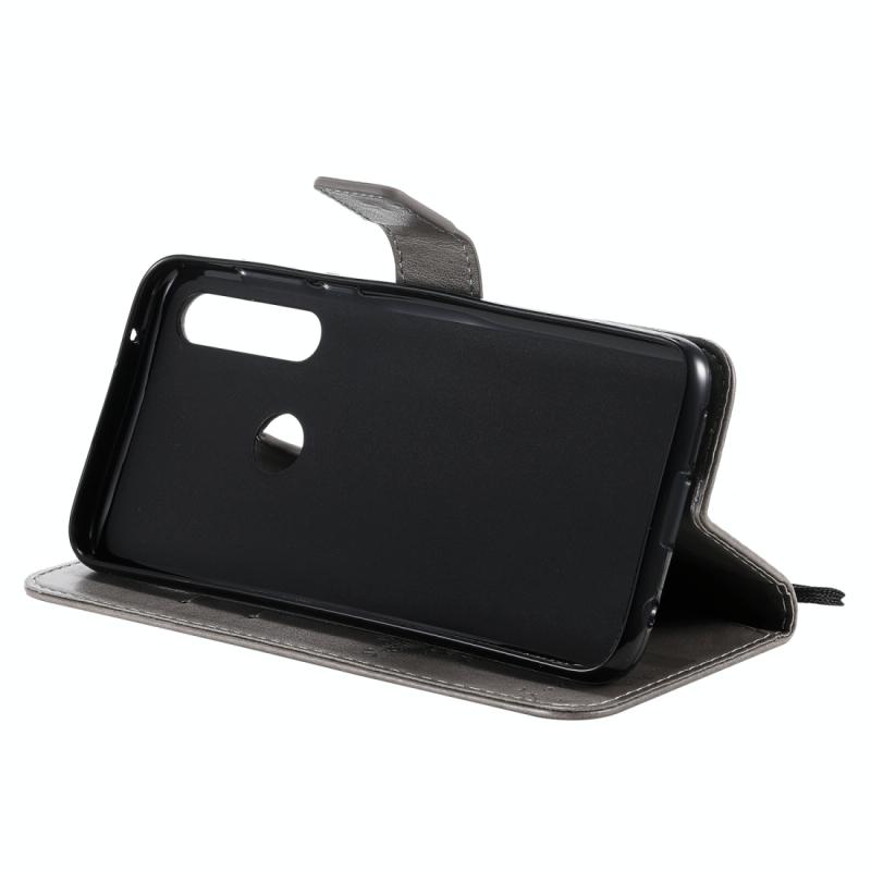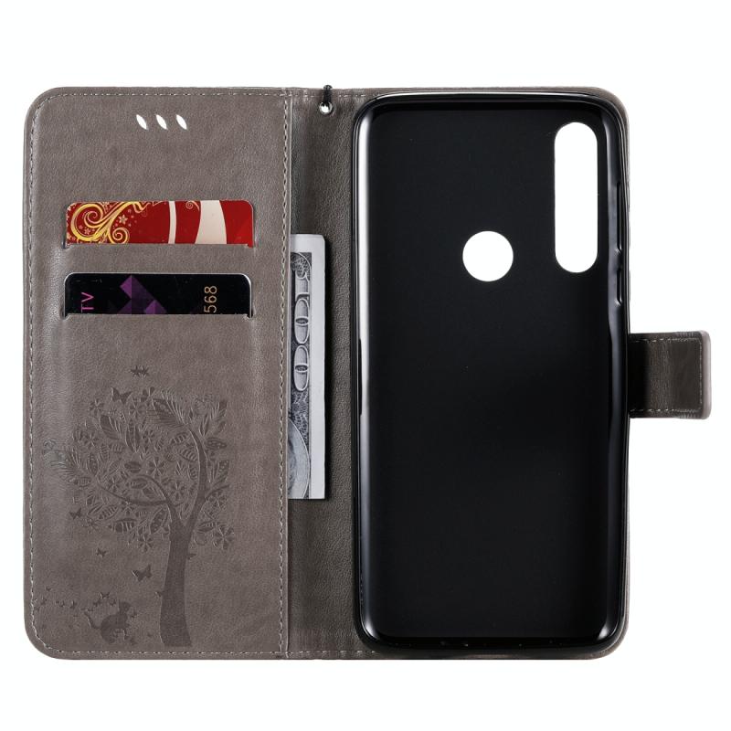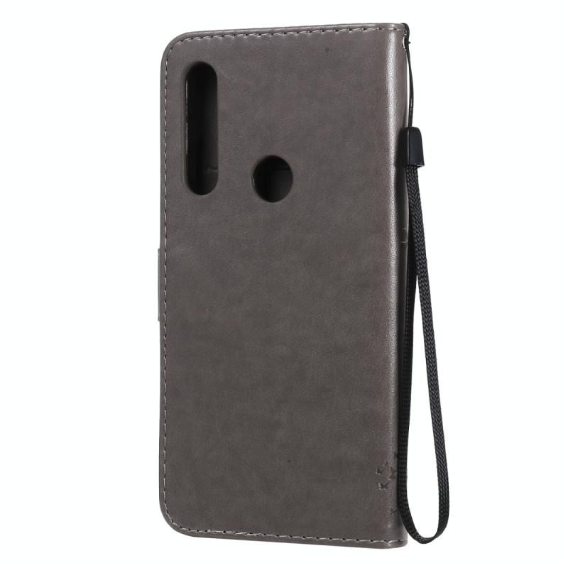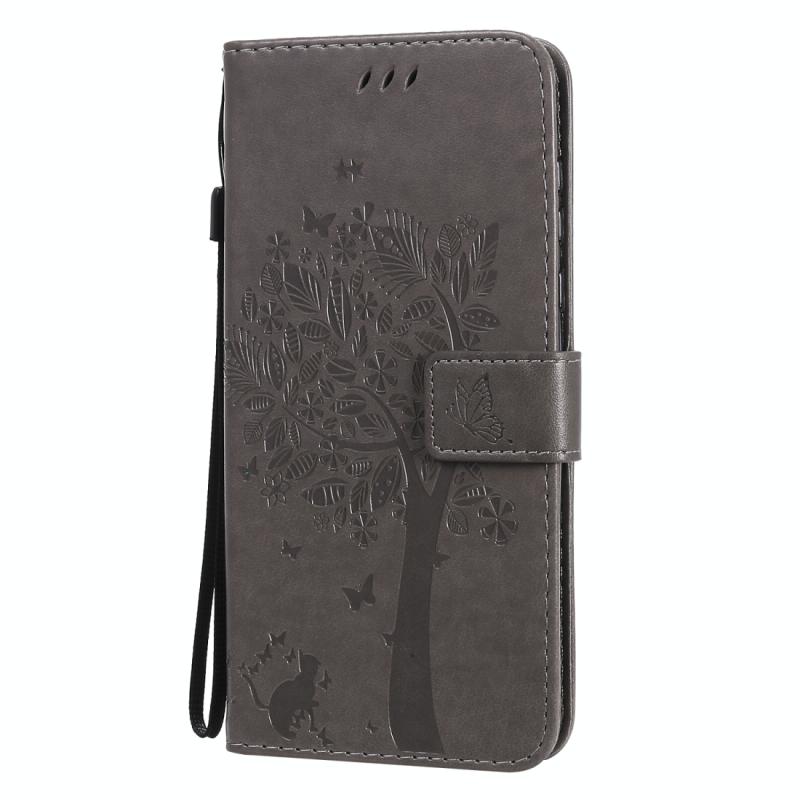 Θήκη δέρματος οριζόντιας αναδίπλωσης για Motorola Moto G Power με ανάγλυφο σχέδιο δέντρου & γάτας, με βάση στήριξης & θήκες καρτών & πορτοφόλι & κορδόνι (Γκρι)