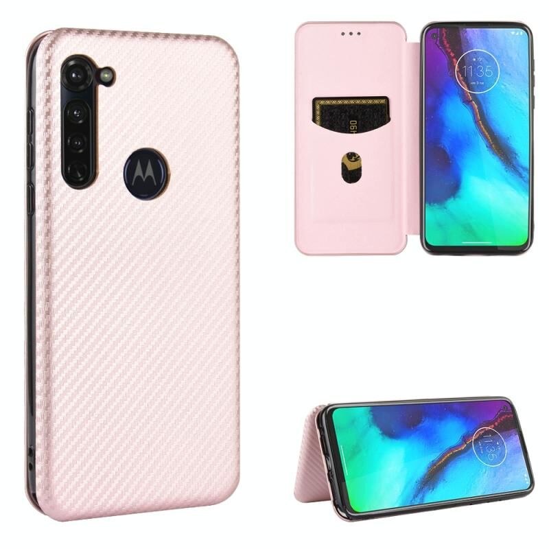 Για Motorola Moto G Pro Carbon Fiber Texture Horizontal Flip TPU + PC + PU Leather Case με σχοινί & υποδοχή κάρτας (ροζ)