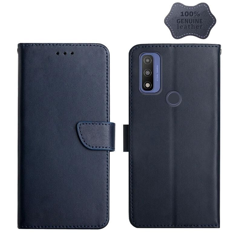 Θήκη τηλεφώνου οριζόντιας αναδίπλωσης από γνήσιο δέρμα για Motorola Moto G Pure 2021, ανθεκτική στα δακτυλικά αποτυπώματα (Μπλε)