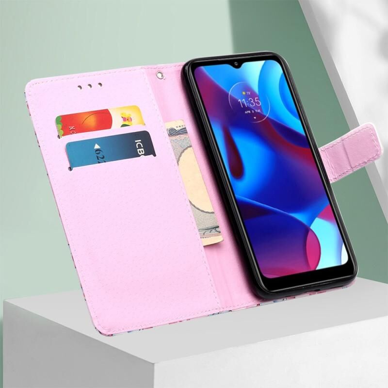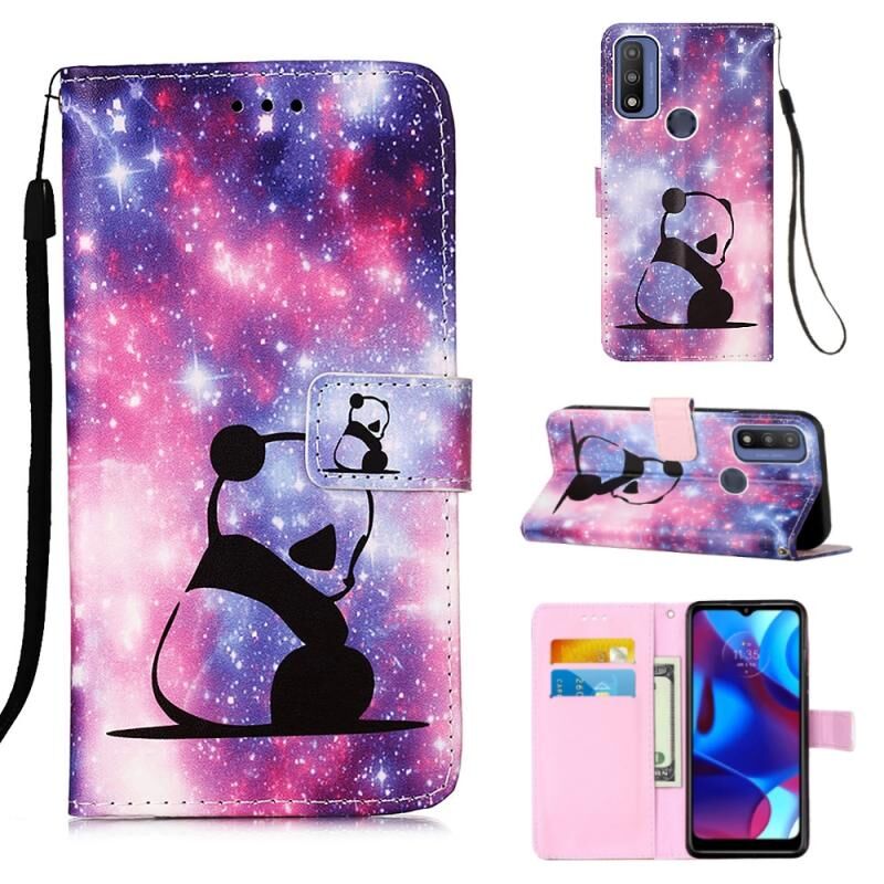 Θήκη τηλεφώνου από δέρμα με απλή ύφανση και πολύχρωμο σχέδιο για Motorola Moto G Pure (Baby Panda)