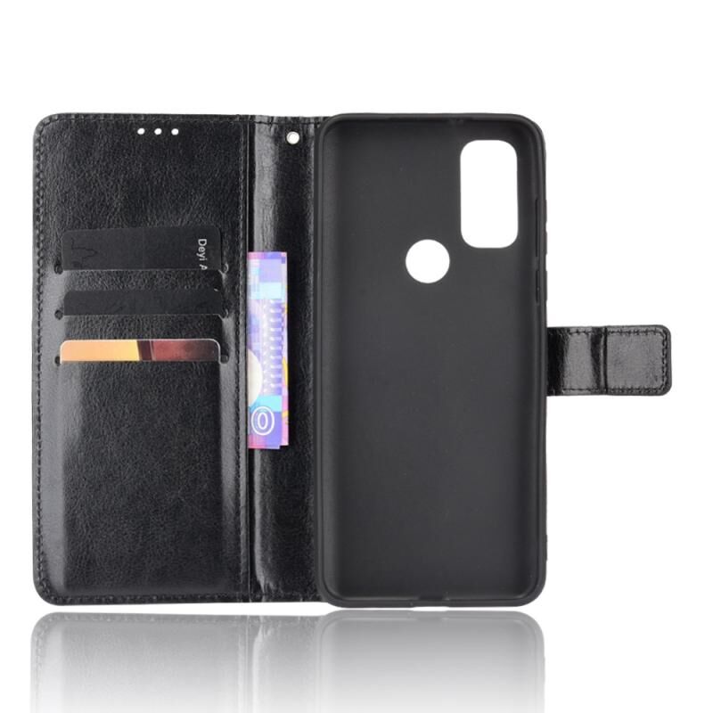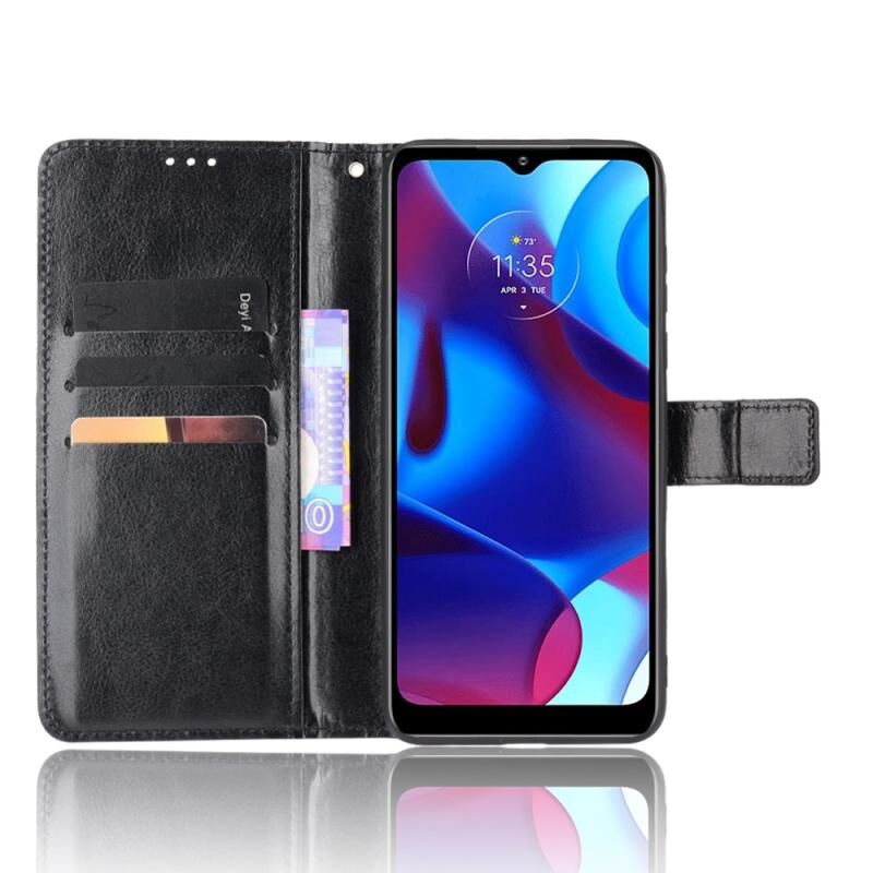 Για Motorola Moto G Pure Crazy Horse Υφή οριζόντια Flip τηλέφωνο δερμάτινη θήκη με θήκη & υποδοχές για κάρτες & κορδόνι (Μαύρο)