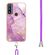 For Motorola Moto G Pure Electroplating Marble IMD TPU Phone Case with Lanyard(Purple 001)