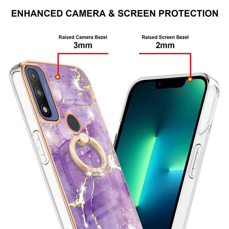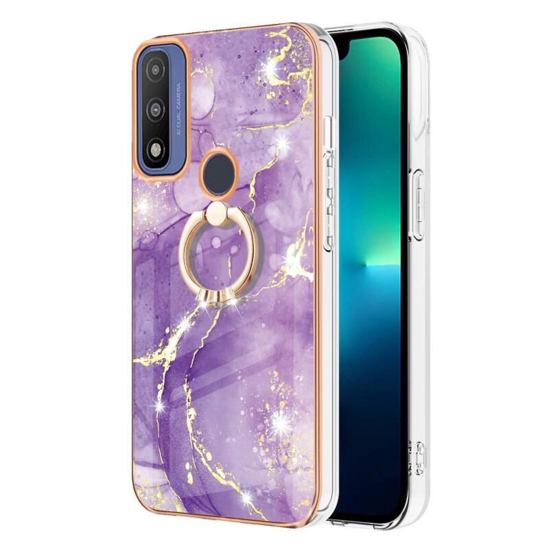 Θήκη κινητού τηλεφώνου για Motorola Moto G Pure με ηλεκτρολυτική μαρμάρινη υφή IMD TPU αντικραδασμική με δακτύλιο στήριξης (Μωβ 001)