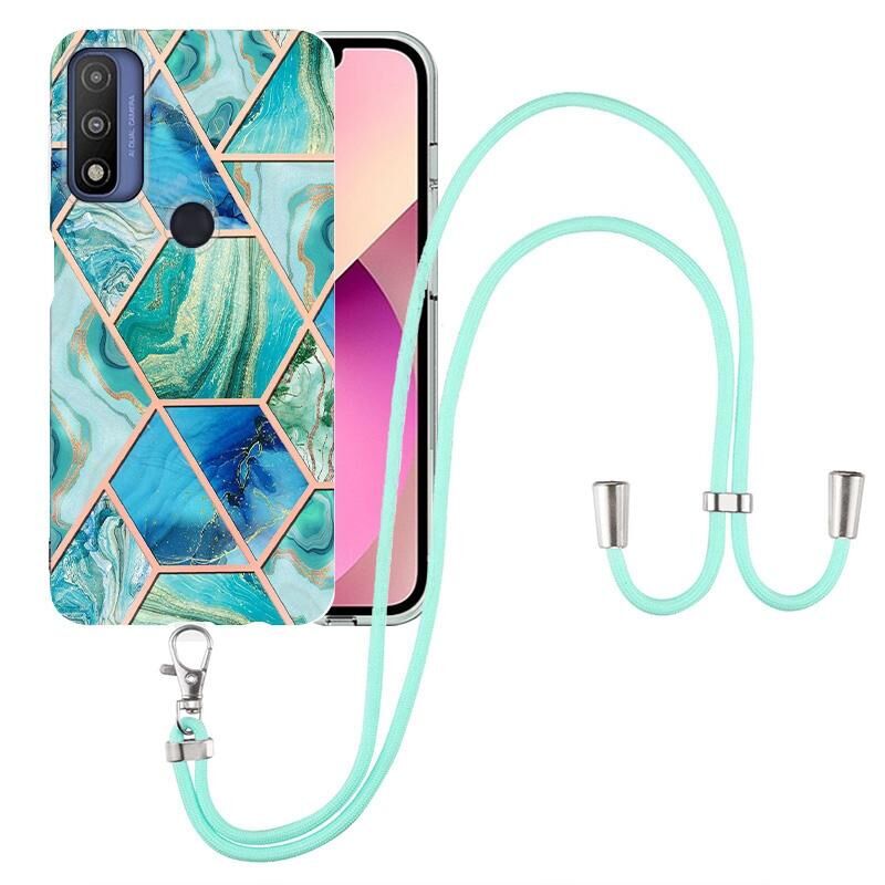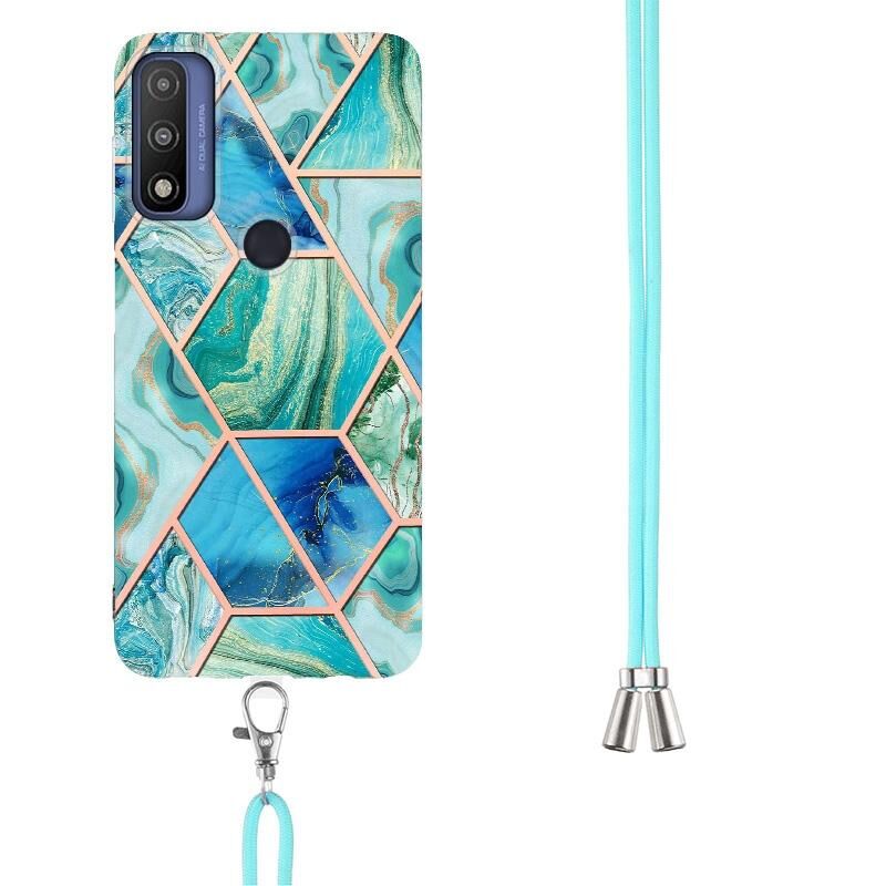 Θήκη κινητού τηλεφώνου TPU με ηλεκτρολυτική επιμετάλλωση και μαρμάρινο σχέδιο για Motorola Moto G Pure με κορδόνι (Σκούρο Μωβ)