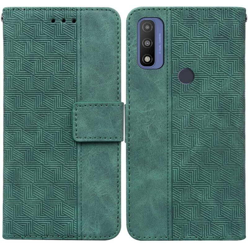 Για Motorola Moto G Pure Γεωμετρική ανάγλυφη δερμάτινη θήκη τηλεφώνου (πράσινο)