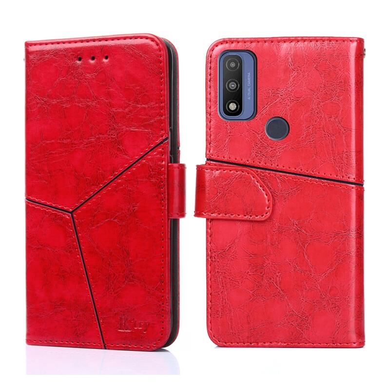Για Motorola Moto G Pure Γεωμετρική ραφή οριζόντια Flip δερμάτινη θήκη τηλεφώνου (κόκκινο)