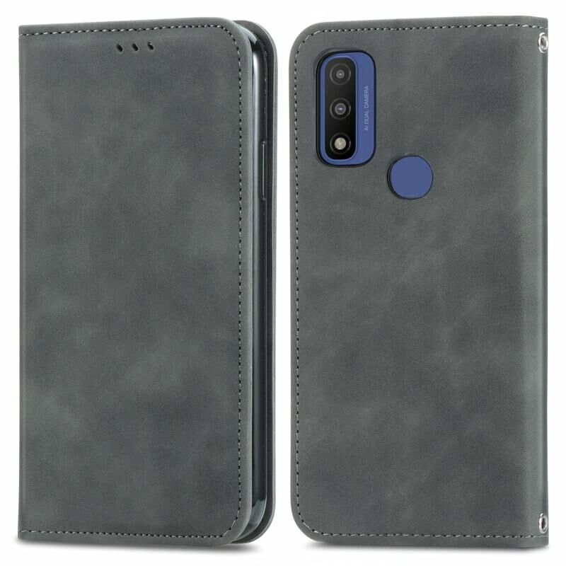 For Motorola Moto G Pure Retro Skin Feel Magnetic Horizontal Flip Leather Case(Grey)
