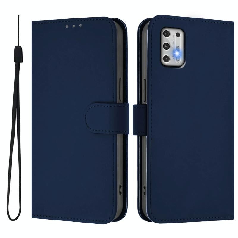 Για Motorola Moto G Stylus 2021 4G Skin Feel Solid Color Δερμάτινη θήκη τηλεφώνου με κορδόνι (Ναυτικό μπλε)