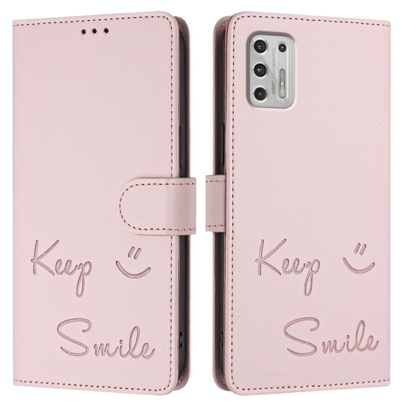 Θήκη τηλεφώνου δερμάτινη με ανάγλυφο χαμόγελο και RFID για Motorola Moto G Stylus 2021 4G (Μέντας Πράσινο)