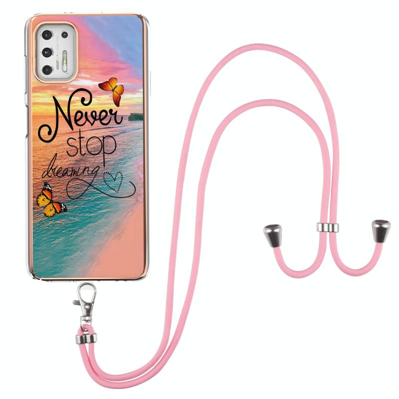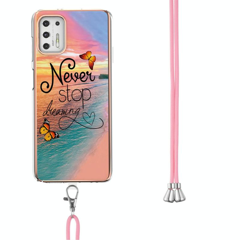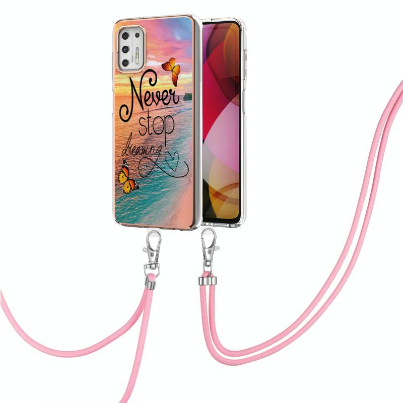 Θήκη προστασίας για Motorola Moto G Stylus 2021 με σχέδιο επιμετάλλωσης IMD, από TPU ανθεκτικό σε κρούσεις με λουρί λαιμού (Πεταλούδα που κυνηγάει όνειρα)