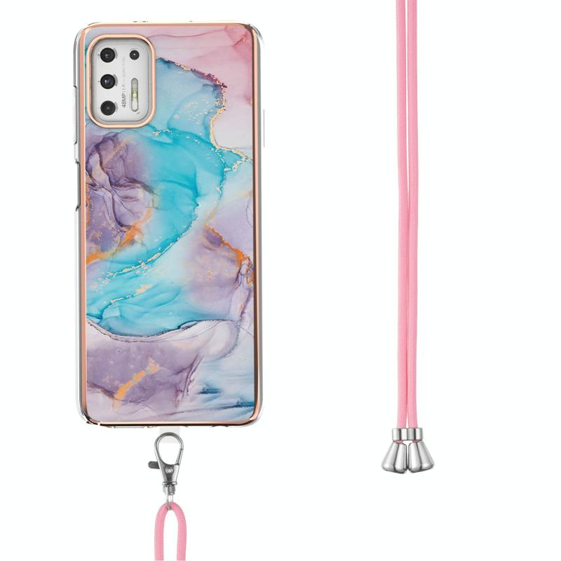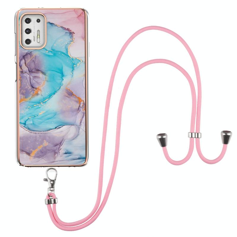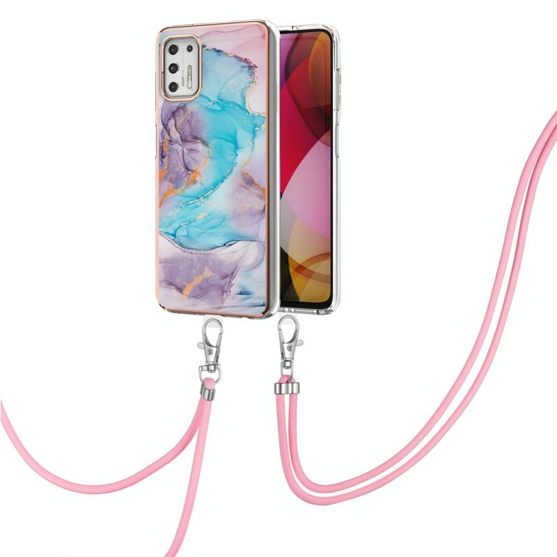 Θήκη για Motorola Moto G Stylus 2021 με σχέδιο επιμετάλλωσης IMD, αντικραδασμική από TPU με λουρί λαιμού (Μωβ Λουλούδι)