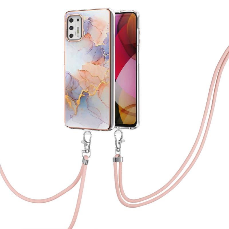 Θήκη για Motorola Moto G Stylus 2021 με σχέδιο επιμετάλλωσης IMD, αντικραδασμική από TPU με λουρί λαιμού (Μωβ Λουλούδι)