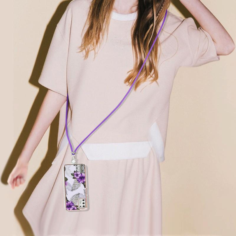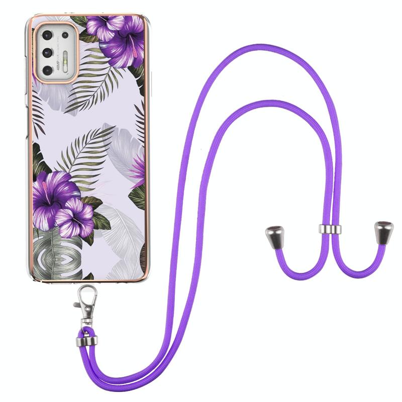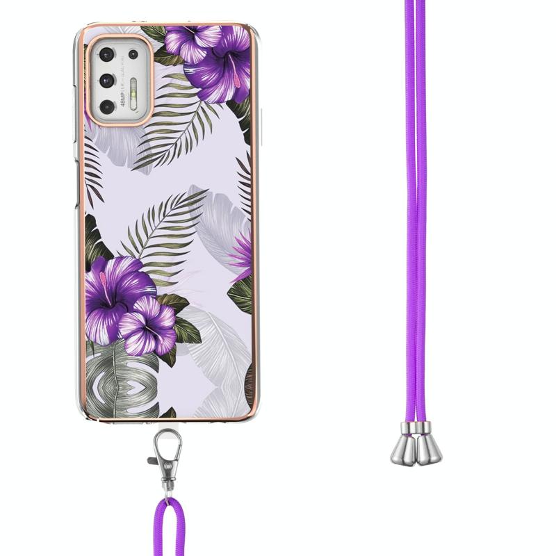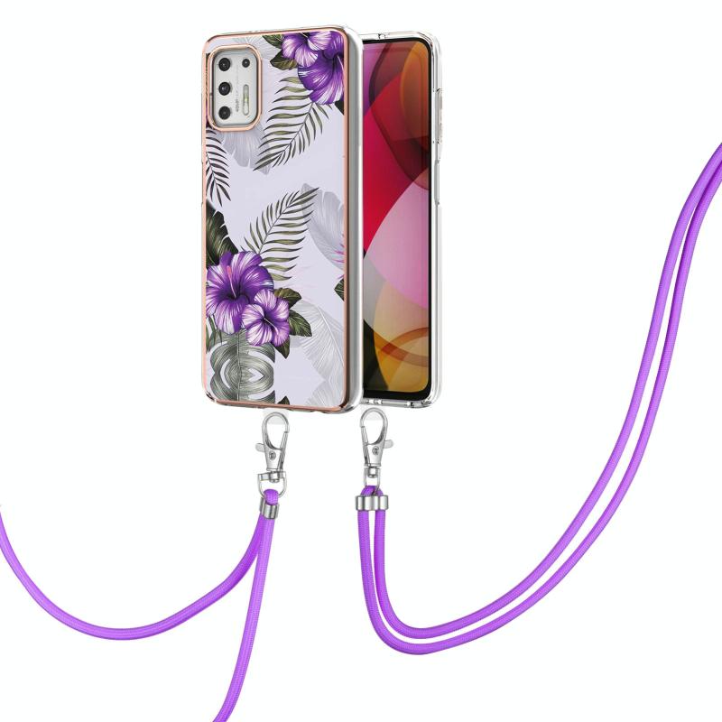 Θήκη για Motorola Moto G Stylus 2021 με σχέδιο επιμετάλλωσης IMD, αντικραδασμική από TPU με λουρί λαιμού (Μωβ Λουλούδι)