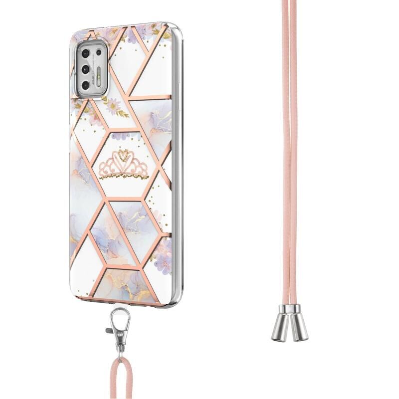 Θήκη προστασίας TPU με ενσωματωμένο κορδόνι (Imperial Crown) για Motorola Moto G Stylus 2021 με ηλεκτρολυτική επιμετάλλωση, συνδυασμό χρωμάτων και σχέδιο μαρμάρου με λουλούδια, αντικραδασμική.
