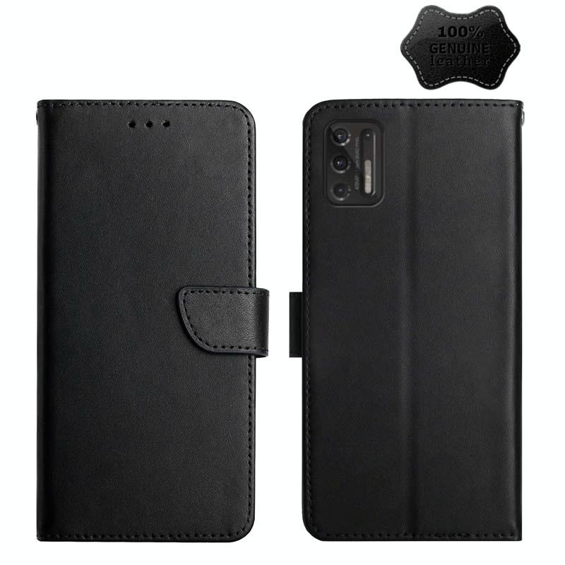 Θήκη τηλεφώνου οριζόντιας αναδίπλωσης από γνήσιο δέρμα για Motorola Moto G Stylus 2021, ανθεκτική στα δακτυλικά αποτυπώματα (Μαύρο)