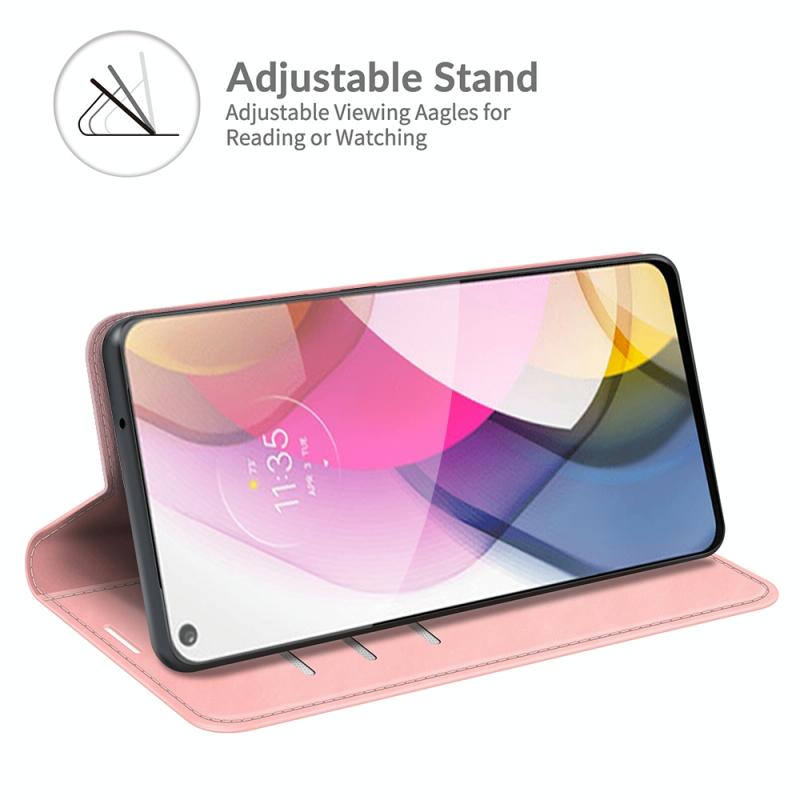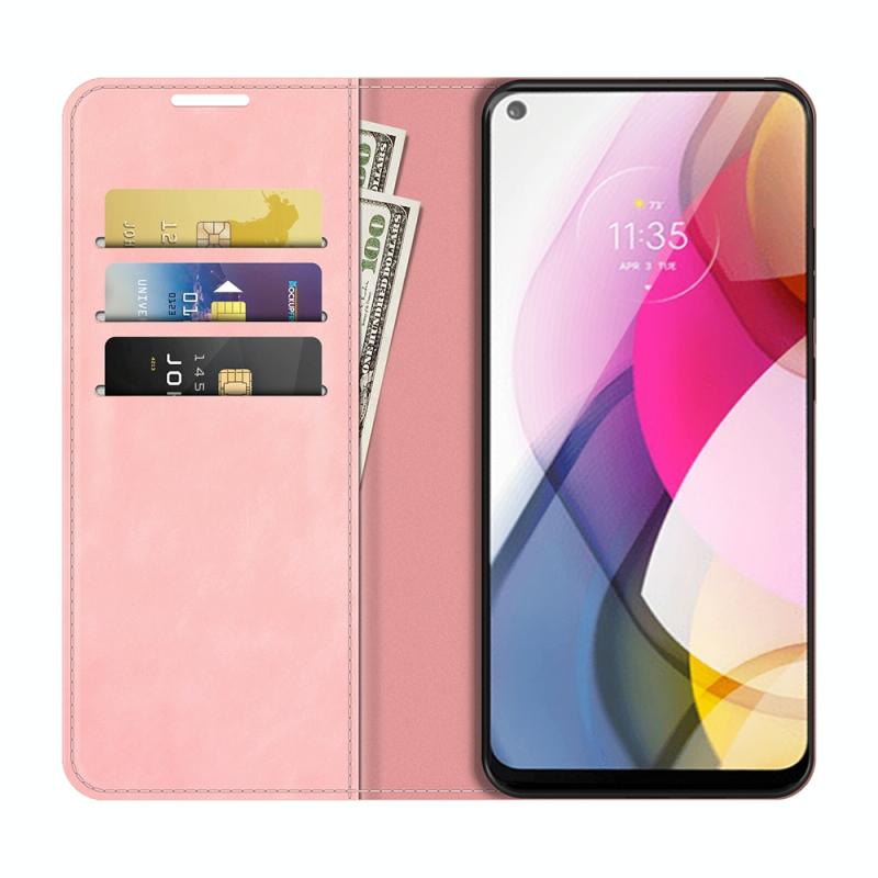 For Motorola Moto G Stylus 2021 Retro-skin Business Magnetic Suction Leather Case with Holder & Card Slots & Wallet(Pink)