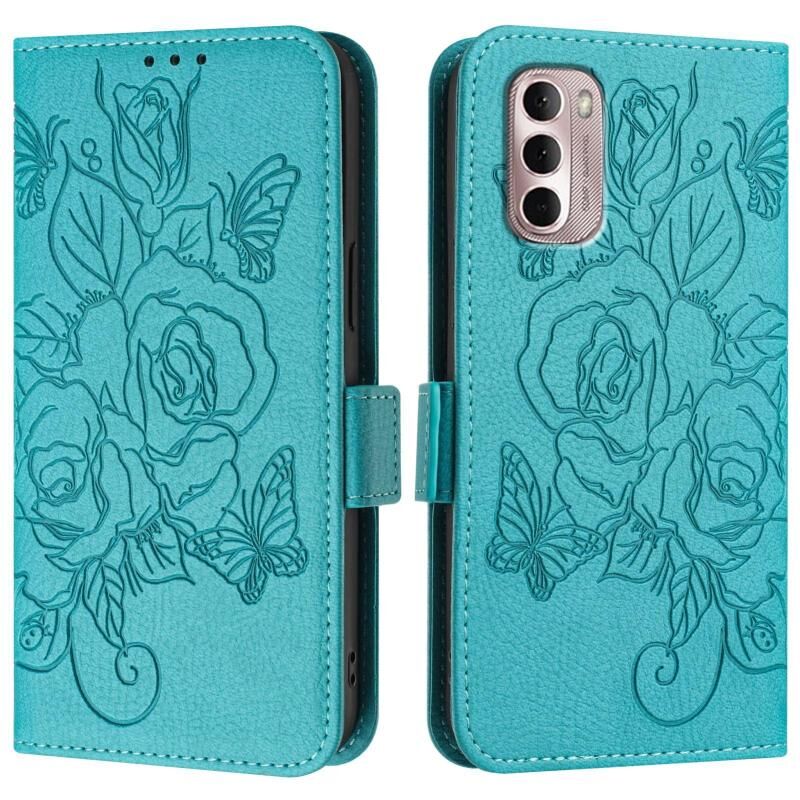 Για Motorola Moto G Stylus 2022 4G ανάγλυφο Rose RFID Anti-theft Δερμάτινη θήκη τηλεφώνου (γαλάζιο)