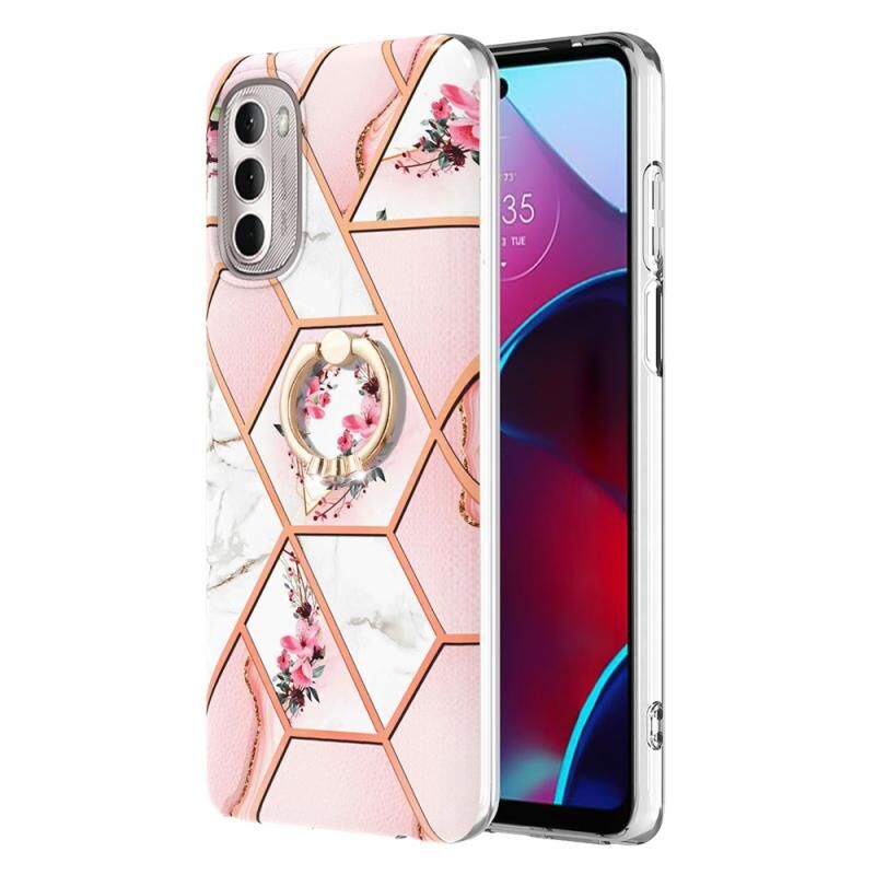 Για Motorola Moto G Stylus 2022 4G Θήκη TPU με Δακτύλιο και Σχέδιο Μαρμάρου-Λουλουδιών (Ροζ Λουλούδι)