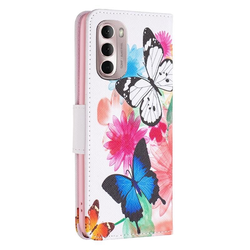 Θήκη τηλεφώνου δερμάτινη οριζόντιας αναδίπλωσης με σχέδιο πολύχρωμης ζωγραφικής για Motorola Moto G Stylus 2022 (Πεταλούδες)