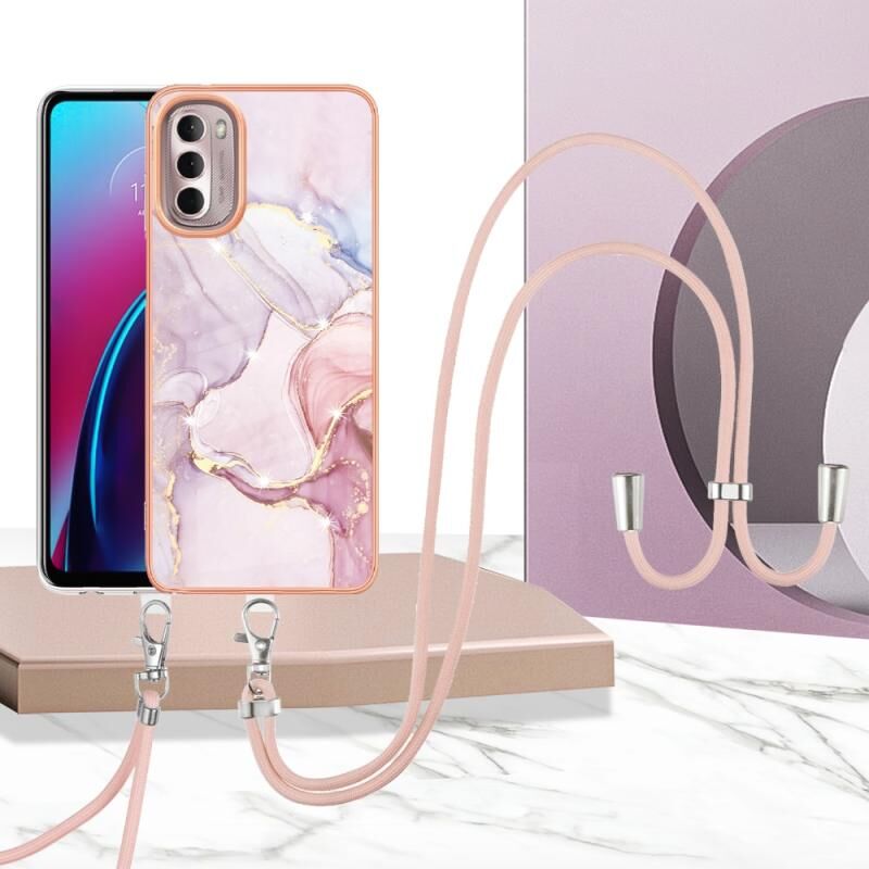 Θήκη κινητού τηλεφώνου TPU με σχέδιο μαρμάρου και ηλεκτρολυτική επικάλυψη για Motorola Moto G Stylus 2022 με κορδόνι (Μωβ 002)