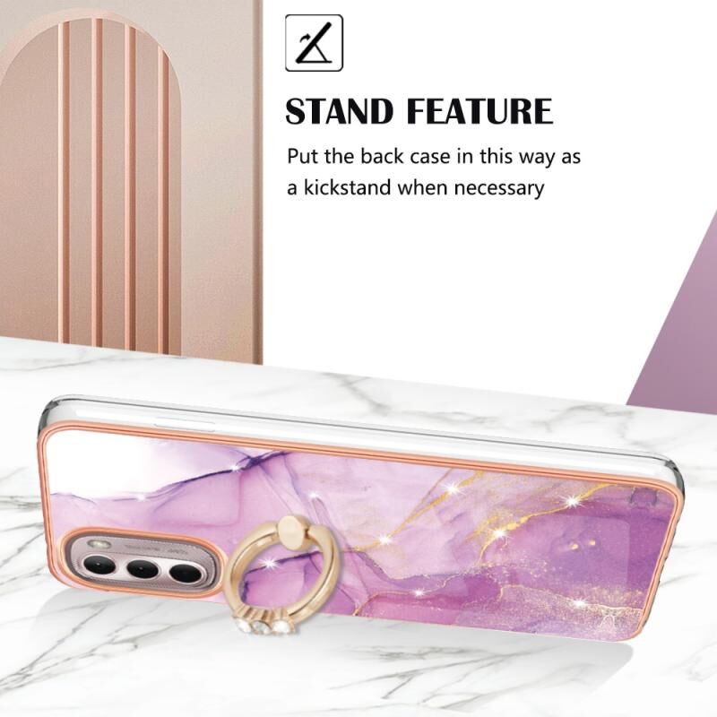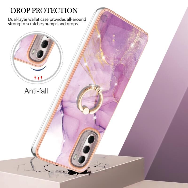 Θήκη κινητού τηλεφώνου TPU με σχέδιο μαρμάρου και ηλεκτρολυτική επικάλυψη για Motorola Moto G Stylus 2022 με δακτύλιο (Μωβ 001)