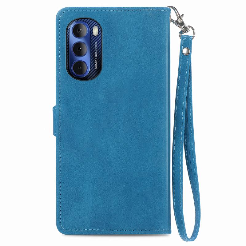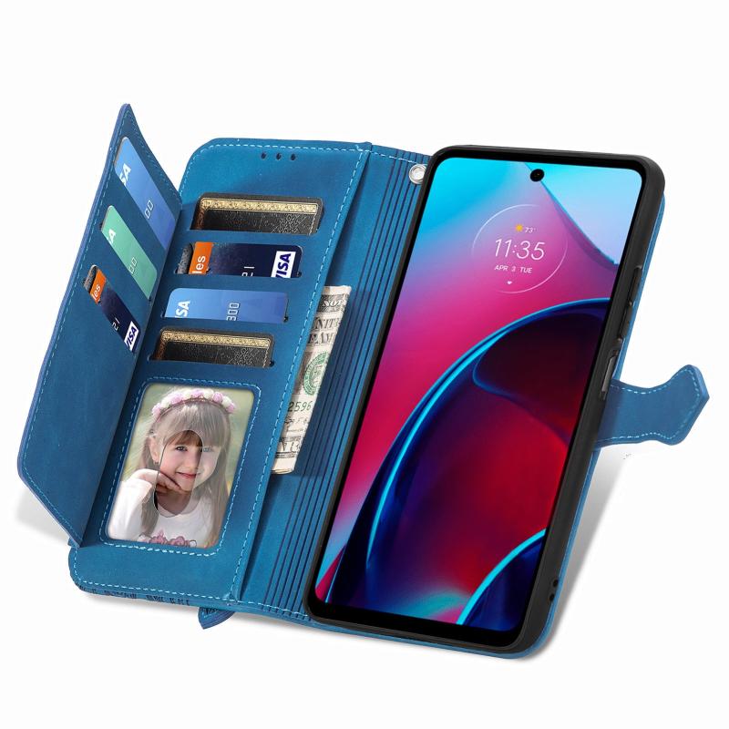 Θήκη κινητού τηλεφώνου από δέρμα με φερμουάρ και ανάγλυφο λουλούδι για Motorola Moto G Stylus 2022 (Μπλε)