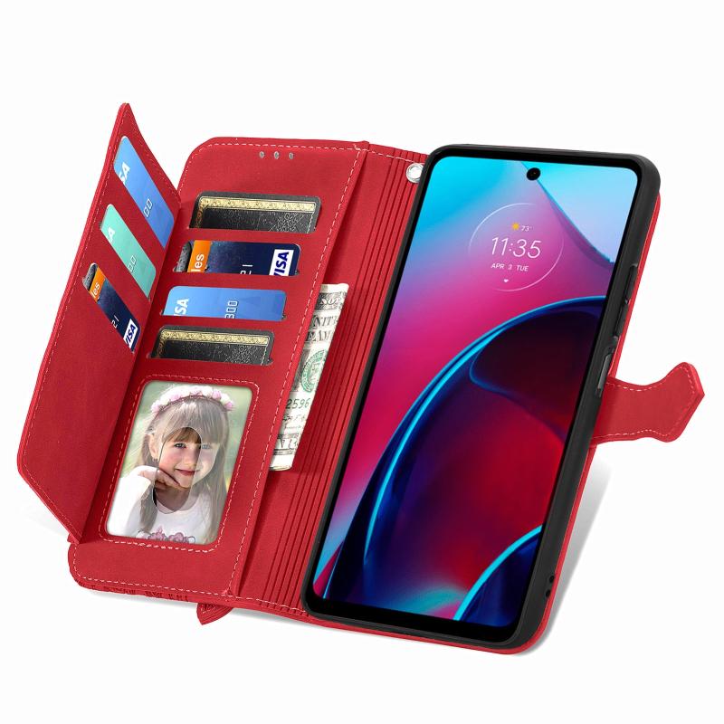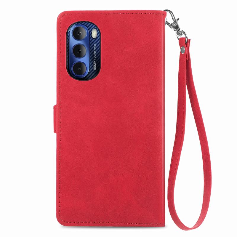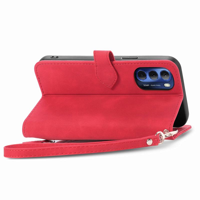 Θήκη κινητού τηλεφώνου από δέρμα με φερμουάρ και ανάγλυφο λουλούδι για Motorola Moto G Stylus 2022 (Κόκκινο)