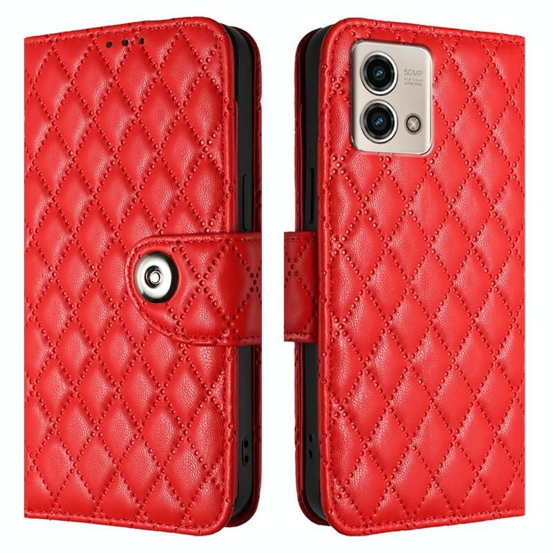 Για Motorola Moto G Stylus 2023 4G Rhombic Texture Flip δερμάτινη θήκη τηλεφώνου με κορδόνι (κόκκινο)