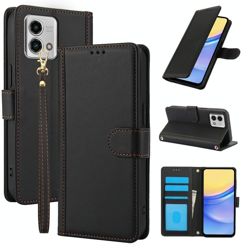 Για Motorola Moto G Stylus 2023 Skin Feel Pure Color Card Slots Δερμάτινη θήκη τηλεφώνου με διπλό κορδόνι (Μαύρο)