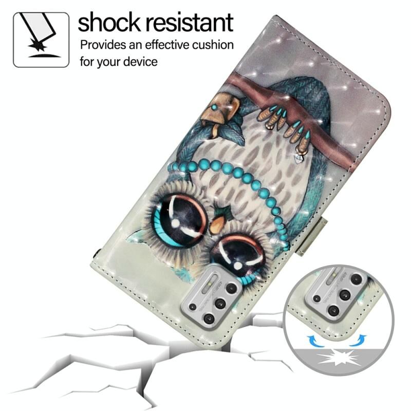 Θήκη τηλεφώνου δερμάτινη, οριζόντιας αναδίπλωσης με τρισδιάστατη ζωγραφική για Motorola Moto G Stylus 4G 2021 (Γκρι κουκουβάγια)