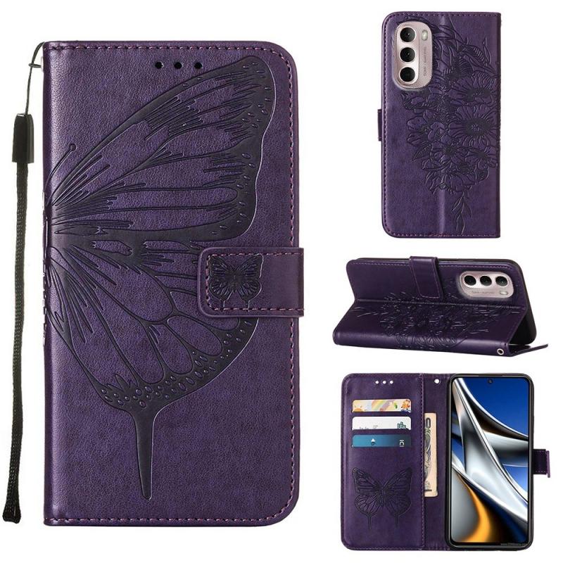 For Motorola Moto G Stylus 4G 2022 Embossed Butterfly Leather Phone Case(Dark Purple)