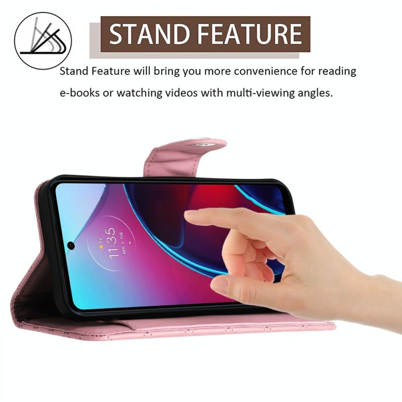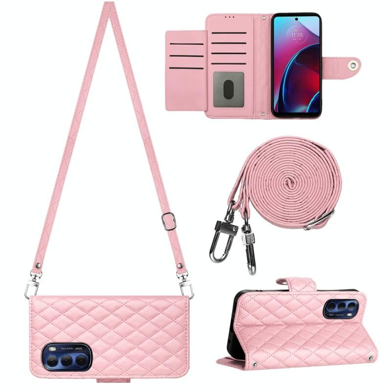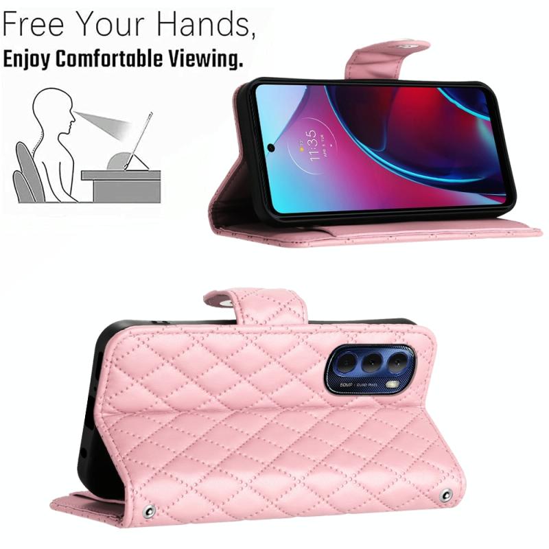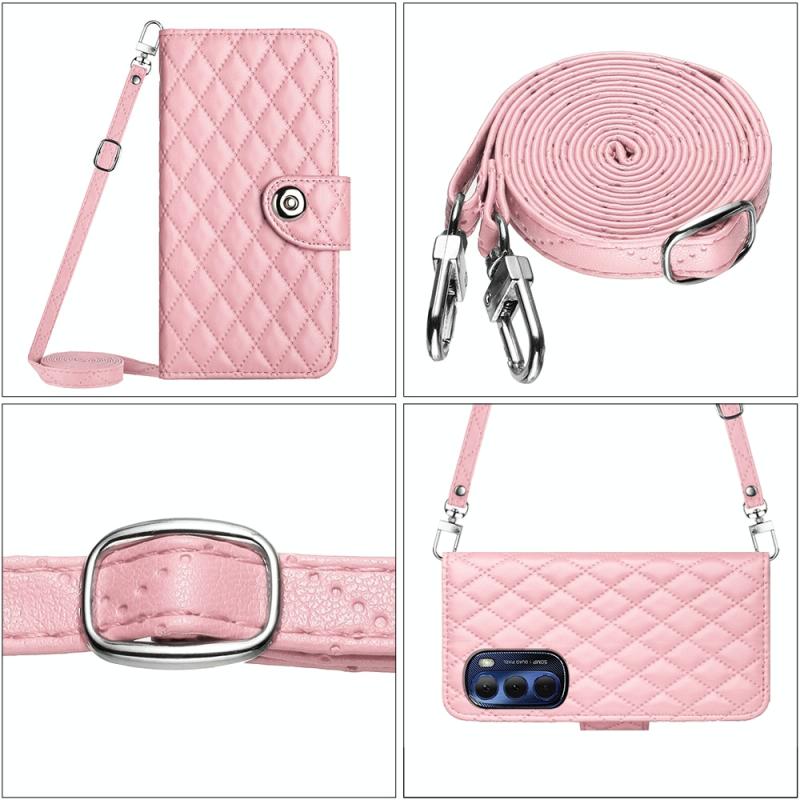 For Motorola Moto G Stylus 4G 2022 Rhombic Texture Flip Leather Phone Case with Long Lanyard(Pink)