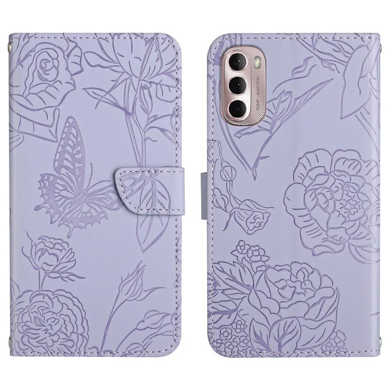 Για Motorola Moto G Stylus 4G 2022 Skin Feel Πεταλούδα Peony ανάγλυφη δερμάτινη θήκη τηλεφώνου (μωβ)