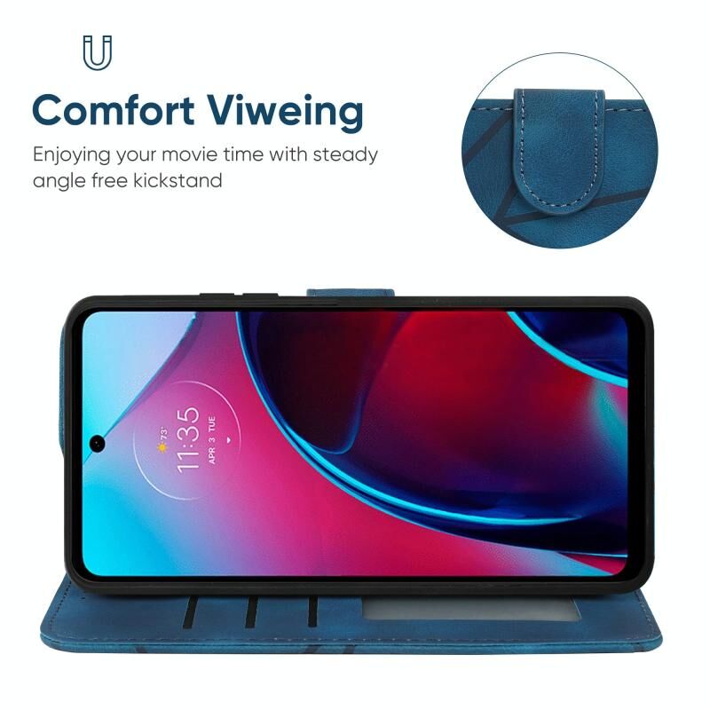 Για Motorola Moto G Stylus 4G 2022 Skin Feel Geometric Lines Leather Phone Case (Μπλε)