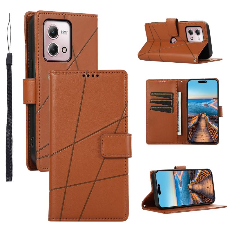 For Motorola Moto G Stylus 4G 2023 PU Genuine Leather Texture Embossed Line Phone Case(Brown)